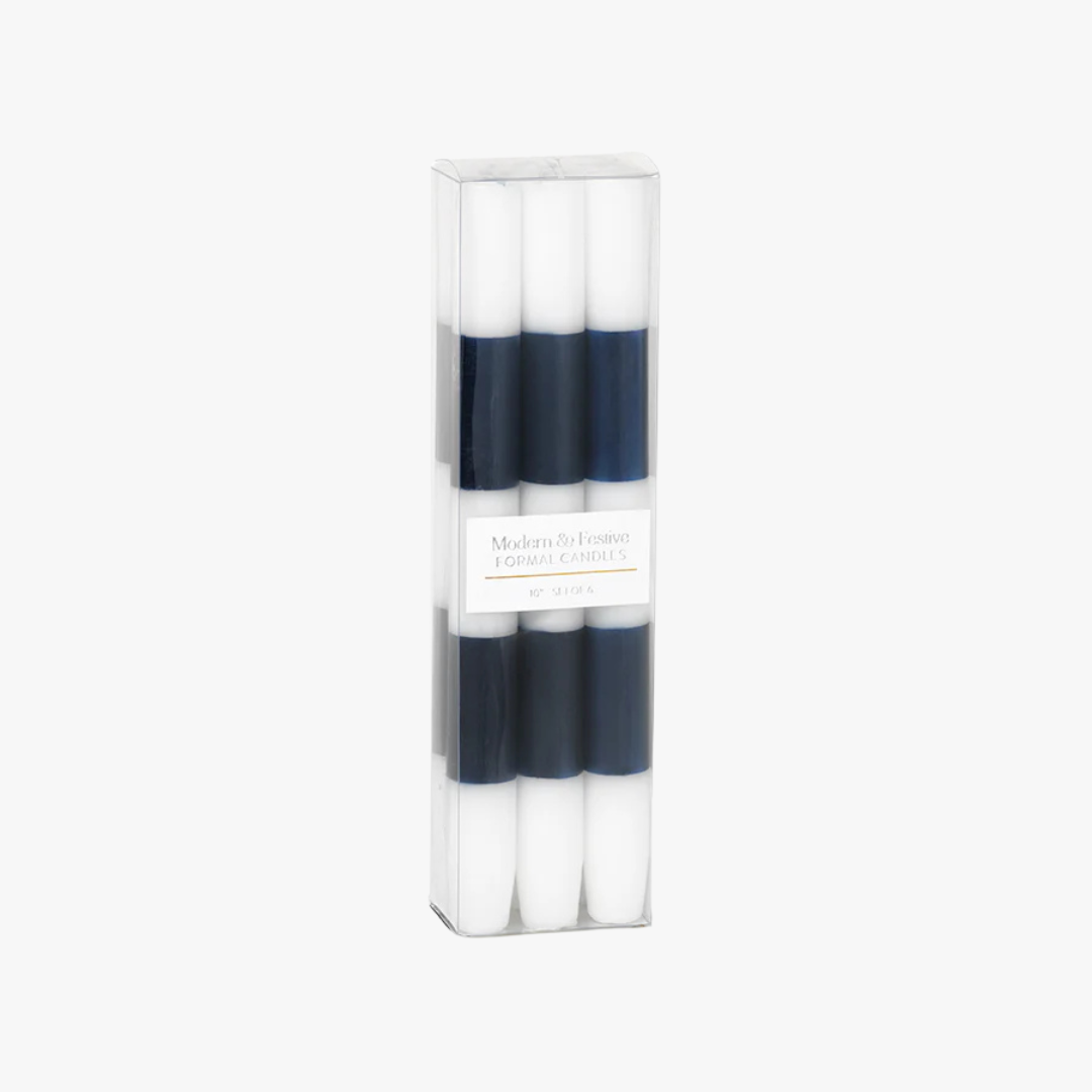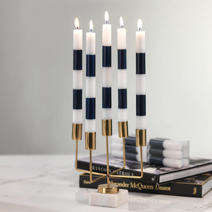 Navy Stripe Taper Candles