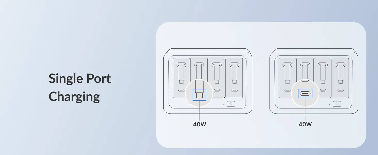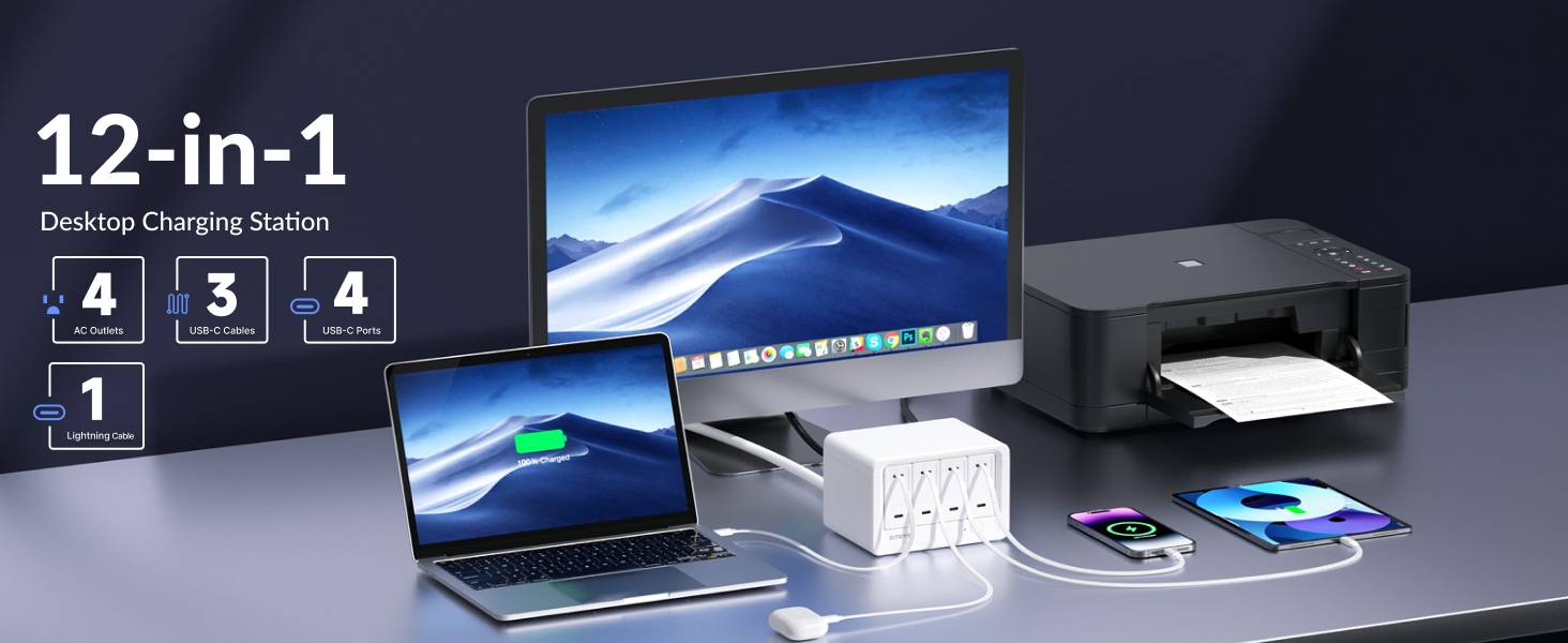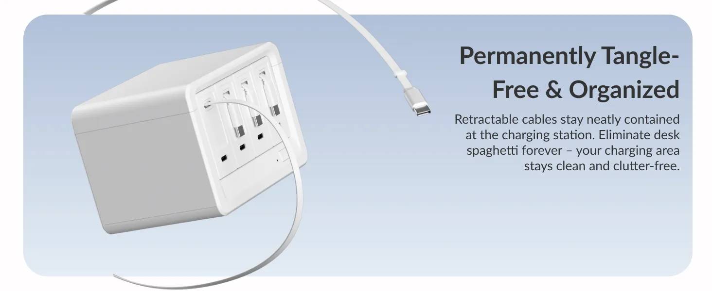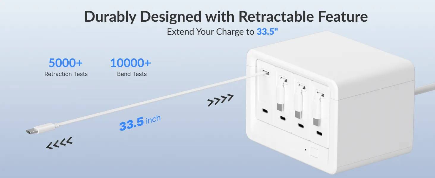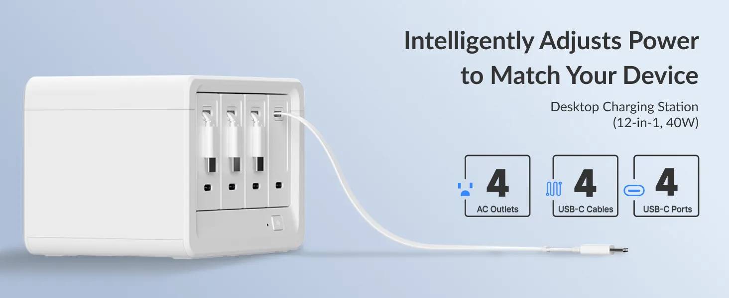All-in-One Charging Solution: Revolutionize your workspace with 4 AC outlets, 4 USB C ports, 4 retractable 40W Type-C wall chargers in one sleek hub. Power laptops, phones, tablets, smartwatches, and more simultaneously—eliminate outlet shortages and tangled cables while maximizing charging efficiency.