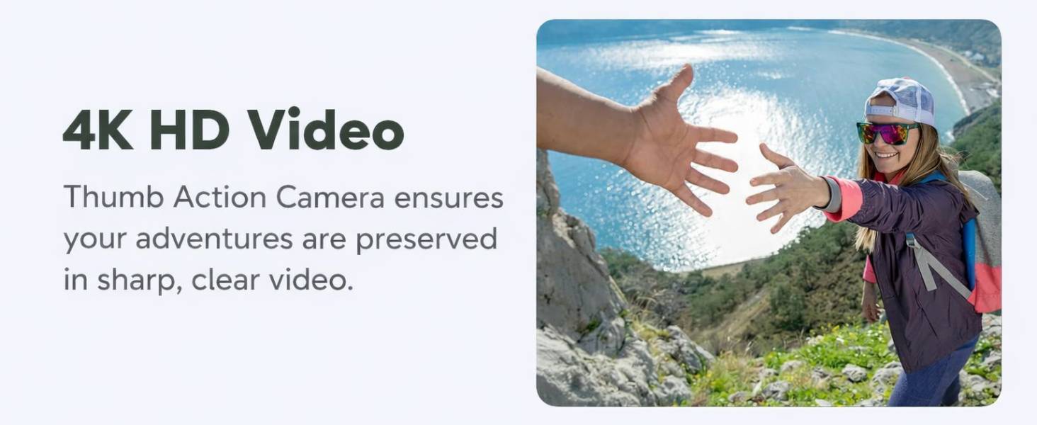 Stunning 4K POVs with Stabilization - Capture crystal-clear 4K footage with minimal distortion thanks to an upgraded chip and wide-angle lens. Combined with built-in Electronic Image Stabilization (EIS), the thumb action camera ensures smooth, hands-free POV shots even during high-intensity activities like cycling, running, or chasing your pets. (Note: This camera is designed exclusively for landscape recording.)