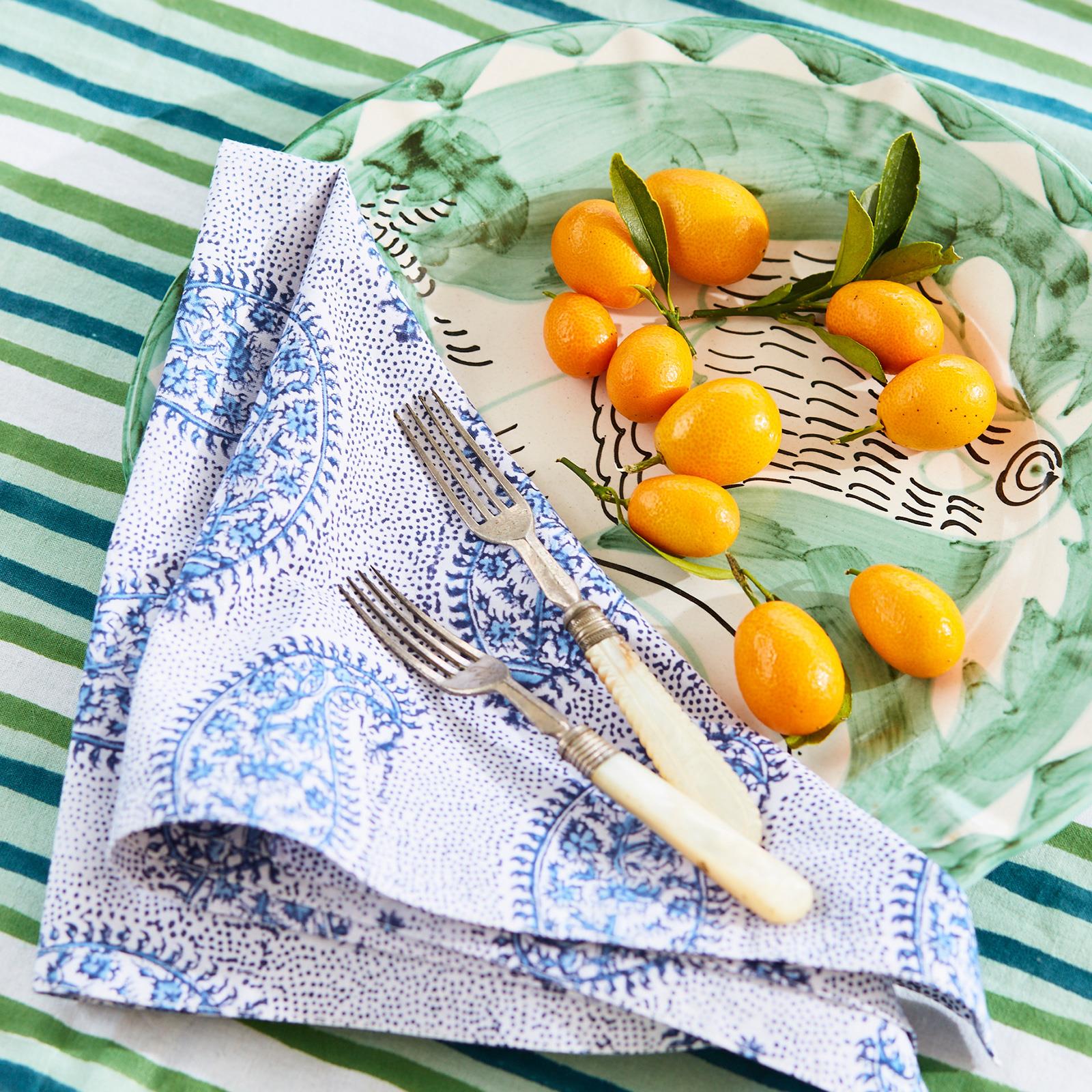 Our classic Paisley Azure Napkins from Walter G will become a staple in your tabletop collection, with its timeless paisley motif and blue color palette. Each napkin has been hand block printed by a talented team of artisans on 100% cotton.