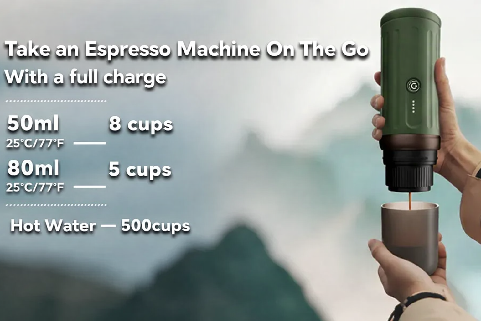 - [8 HOT CUPS PER CHARGE (1.7oz/50 ml each) ] With 77°F/25°C, a full charge heats and brews up to 8 espressos using this portable espresso maker. Results vary with water temperature/volume; many portable coffee maker options yield only 3–4 cups per charge.